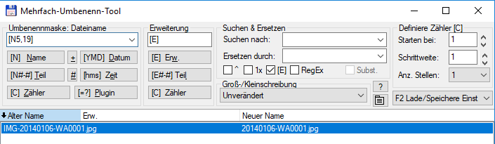 Erlaubt das Umbenennen aller markierten Dateien mit leistungsfähigen Funktionen: